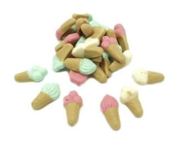 Sirop de maïs, sucre, fécule de maïs, gélatine bovine, concentré de jus de pomme, acidifiant : acide citrique, colorants : caramel, dioxyde de titane, extrait de raisin, bleu 1, huile de palme, arômes artificiels, cire de carnauba, cire d’abeille, concentrés de pomme, de radis, de cassis