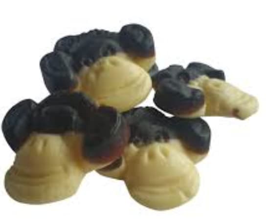 Ingredients: Sugar (glucose syrup, sugar dextrose), modified starch, apple juice concentrate, potato protein, citric, malic and lactic acids, concentrates (radish, apple, safflower, black carrot, red grape, red cabbage, black berry, natural flavouring, sunflower oil, carnauba wax. May contain milk.