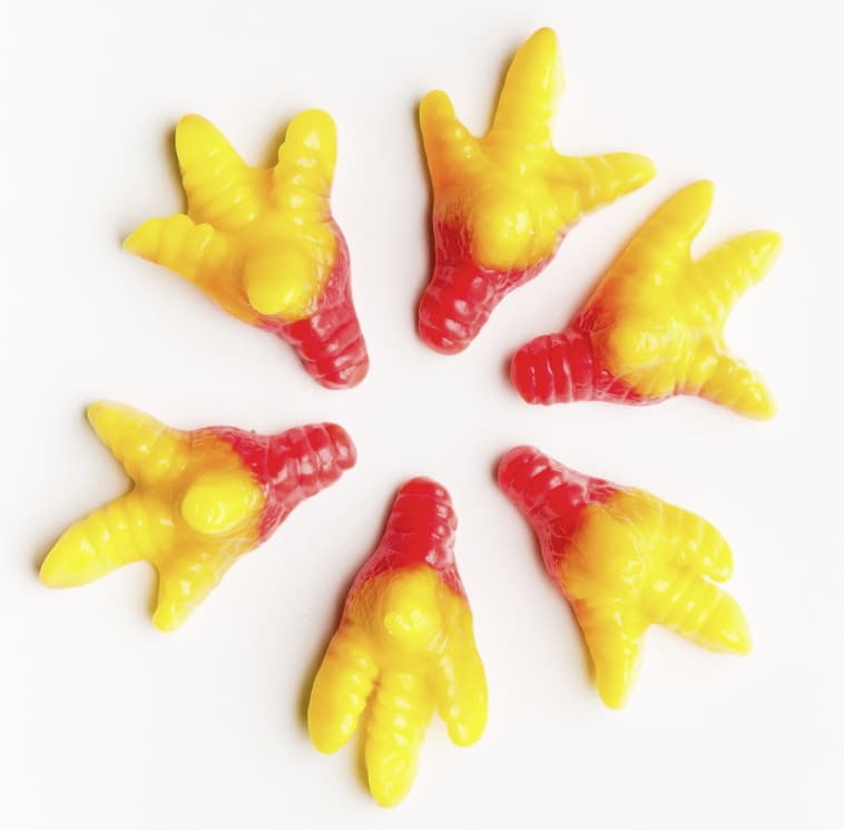 Une friandise originale en forme de pattes de poulet, aux couleurs vives (jaune et rouge), au goût fruité subtilement acidulé. Fun et surprenante, elle séduit petits et grands gourmands !